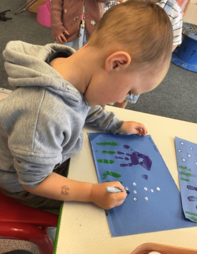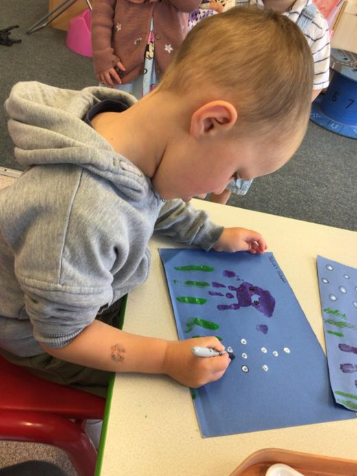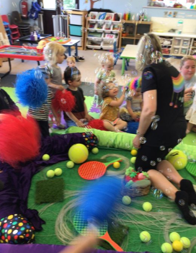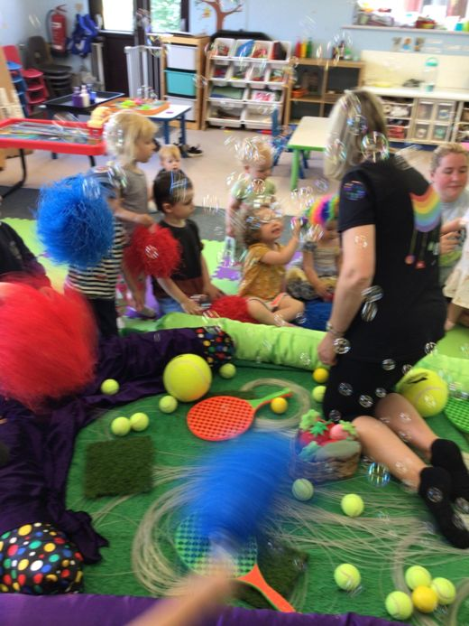 We have had the wonderful Andrea from Bloom north Devon join us for exciting sessions including: Wimbledon, under the sea and France. The children had a chance to practice their tennis skills, dresing up, water play, . They all said hello to cooper and enjoyed popping all the bubbles