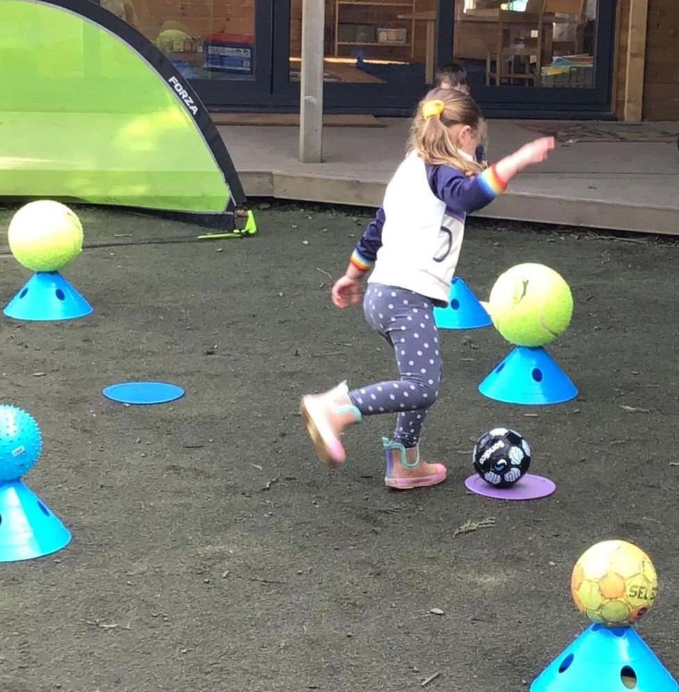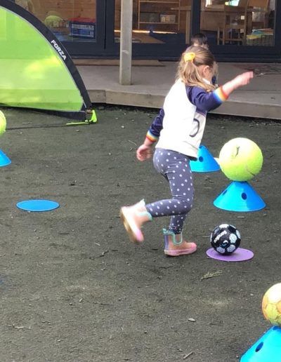 Our weekly Football sessions with Goal Getters involves the children running, kicking, and practicing their teamwork.